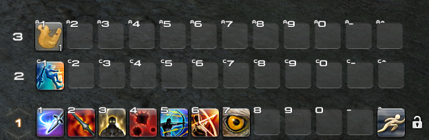 画像ではなにもセットされていませんが、ここはホットバーの共有化(β3時点では未実装の機能。)を利用して、戦闘中ではまず使わないであろうアクション等をセットする予定です。