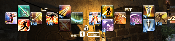 こちらは竜騎士で試してみた配置です。ちなみに二段突きなど一部の攻撃アクションとバフ系のアクションはセットしていません。